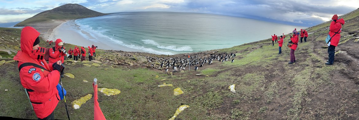 此後,我們從福克蘭島一路向東,駛向南喬治亞導,距離約 1,300 公里,這段亞南極的海域 有眾多海鳥、海豹及鯨豚等在此活動。