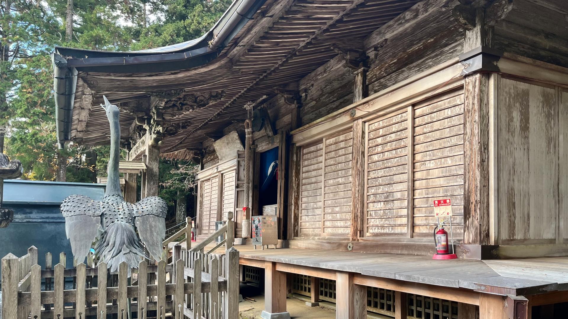 纜車的設施具有乘坐 101人的規模,讓遊客在空中享受壯觀的景色,寺內的建築物保留著傳統的日本寺廟風格,木質結構和屋頂設計具有濃厚的宗教氛圍,寺廟周邊圍繞著壯麗的自然景觀,樹齡數百年的杉樹高聳入雲,為寺廟增添了一份神秘的靈氣。